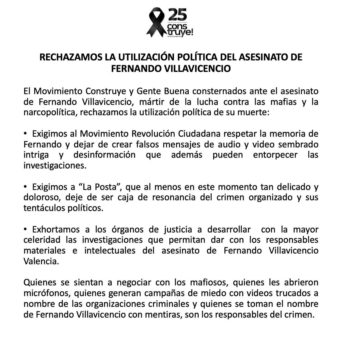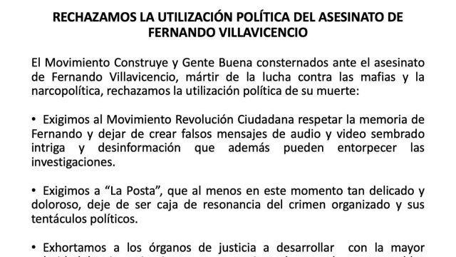 Ekvador devlet başkanı adayı Fernando Villavicencio, başkent Kito’da seçim kampanyası yürüttüğü sırada uğradığı suikast sonucunda yaşamını yitirdi. 14 Mayıs 2021- 17 Mayıs 2023 tarihleri arasında, Ekvador Ulusal Meclisi’nde görev yapan Villavicencio’nun resmi sosyal medya hesabından onun adına yapılan paylaşımda, “Adli makamları, Fernando Villavicencio Valencia'nın öldürülmesinden sorumlu olanları bulmak için soruşturmaları mümkün olan en kısa sürede yürütmeye çağırıyoruz. Mafyalarla masaya oturanlar, onlara mikrofon açanlar, suç örgütleri adına videolarla korku kampanyaları üretenler ve Fernando Villavicencio'nun adını yalanlarla kullananlar bu cinayetten sorumludur” denildi.