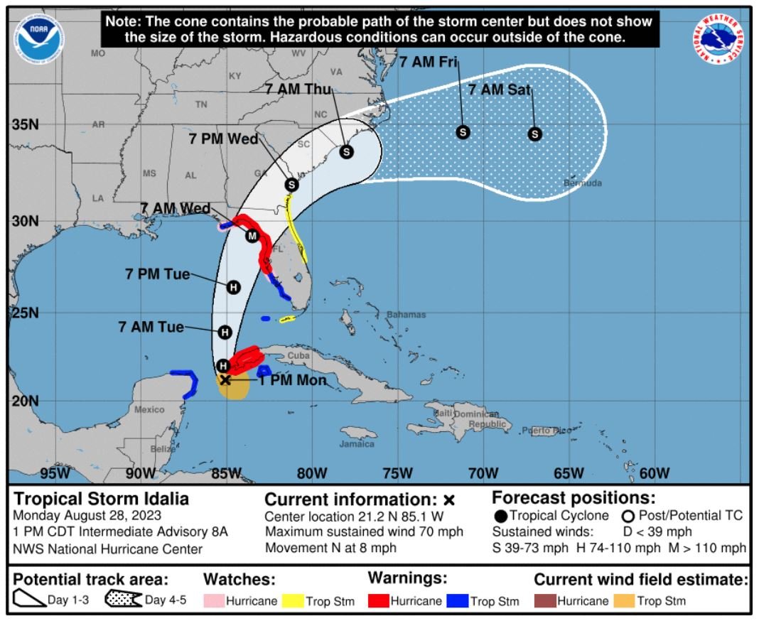 Florida Valiliği’nden yapılan açıklamada, “Vali DeSantis'in talebi üzerine Federal Acil Durum Yönetim Kurumu (FEMA) Idalia Kasırgası için yağış öncesi acil durum ilanı verdi. Ayrıca Eyalet Acil Durum Operasyon Merkezi de kasırganın olası etkilerine karşı uyarıları Birinci Seviye'ye yükseltilmiştir. Idalia'nın bugün erken saatlerde karaya ulaşması ve güçlenerek büyük kasırgaya dönüşmesi tahmin edilmektedir. Hayatı tehdit eden fırtına dalgaları ve tehlikeli rüzgarlar Florida'nın körfez kıyısının bazı bölümleri için giderek daha olası hale gelmektedir” denildi.