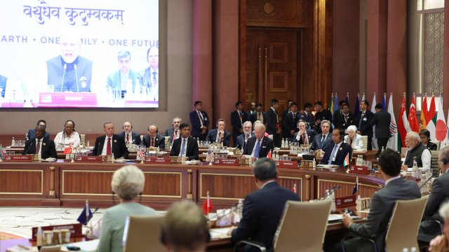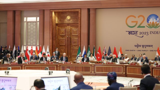 Hindistan'ın ev sahipliğinde düzenlenen 18'inci G20 Liderler Zirvesi başladı. Cumhurbaşkanı Recep Tayyip Erdoğan, resmi karşılama fotoğraf çekimi sonrasında "Tek Dünya" temasıyla gerçekleştirilen günün ilk oturumuna katıldı.