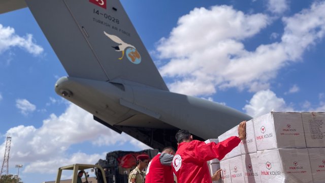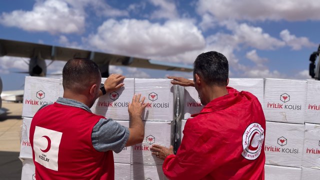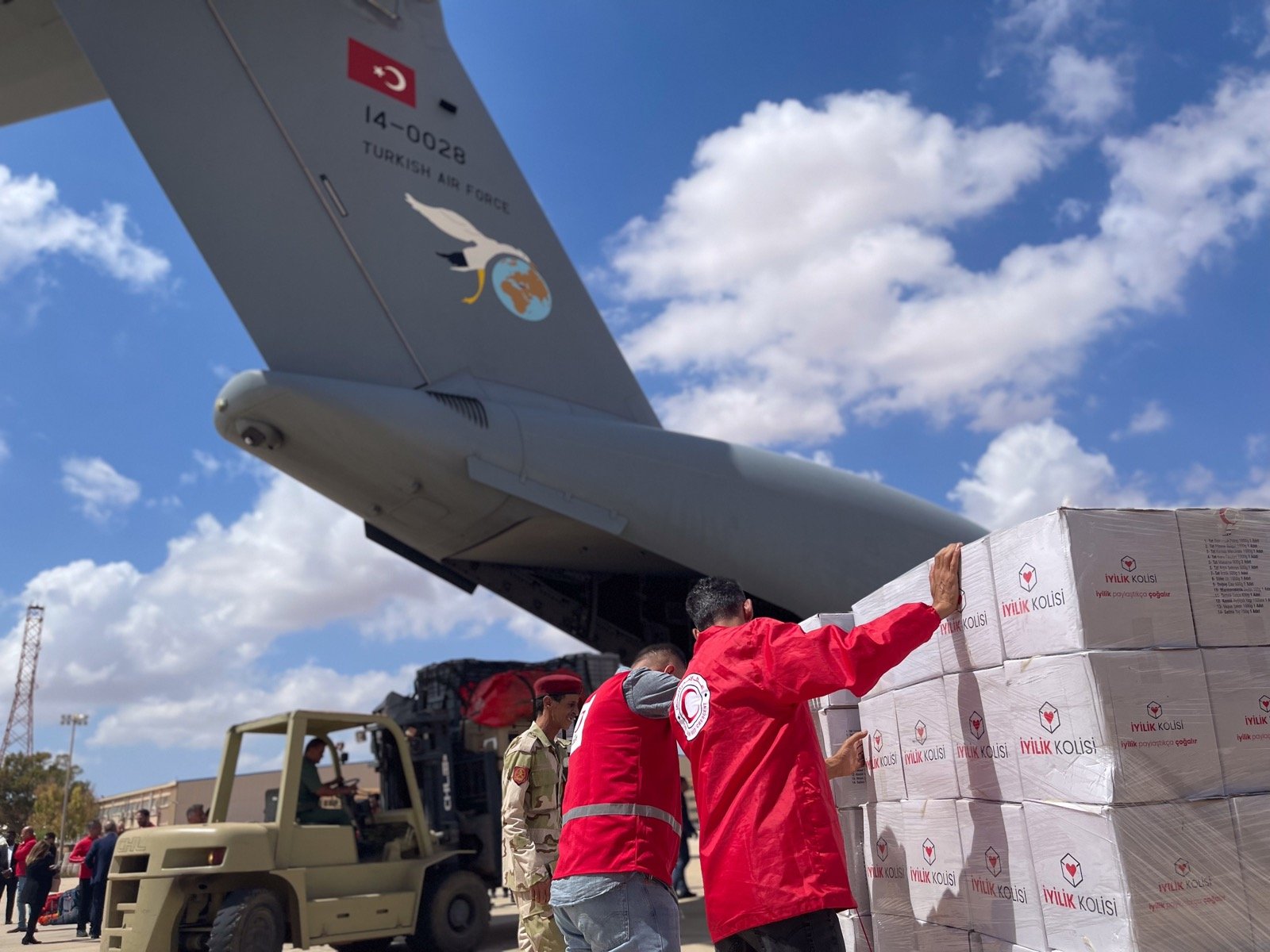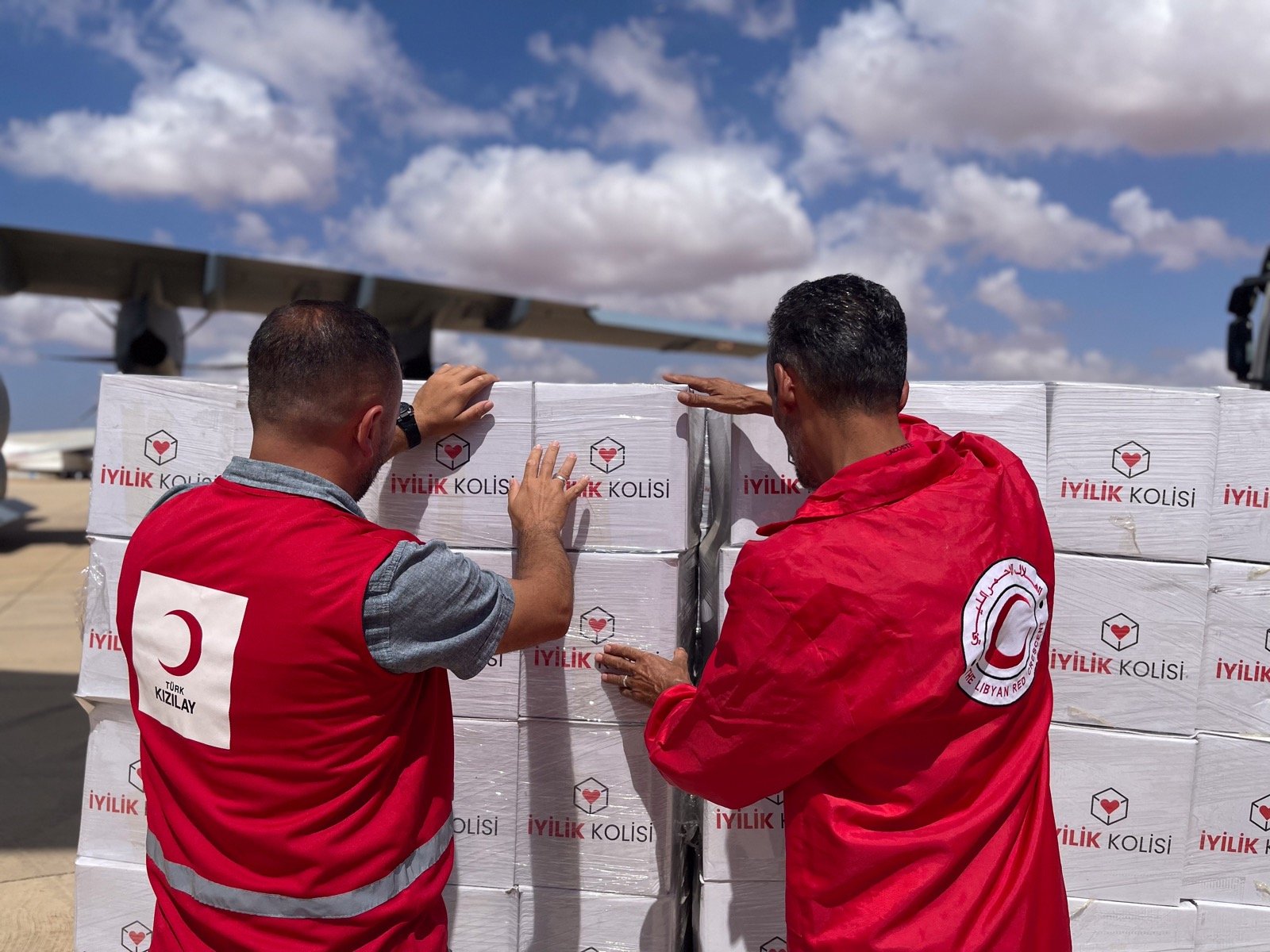 Belirlenen acil ihtiyaçlar doğrultusunda hazırlıklarını yapan Türk Kızılay hazırladığı insani yardım malzemelerini kargo uçağına yükleyerek Libya’ya ulaştırdı. Askeri kargo uçağıyla Libya’ya ulaşan 6 kişilik ekip, selzedelere yönelik gerçekleştirilecek yardım faaliyetleri kapsamında ilk etapta çadır, battaniye, gıda ve hijyen kolisinden oluşan acil insani yardım malzemelerini bölgeye ulaştırdı.