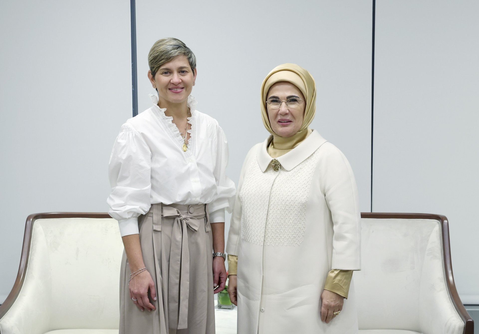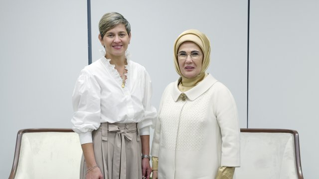 Ayrıca Emine Erdoğan, Kolombiya Cumhurbaşkanı Gustavo Petro'nun eşi Veronica Alcocer Garcia ile Türkevi’nde görüştü. Görüşmede, Emine Erdoğan ve Veronica Alcocer Garcia, kadın hakları, eğitimde fırsat eşitliği ve atık yönetimi konusunda bilgi paylaşımında bulundu.