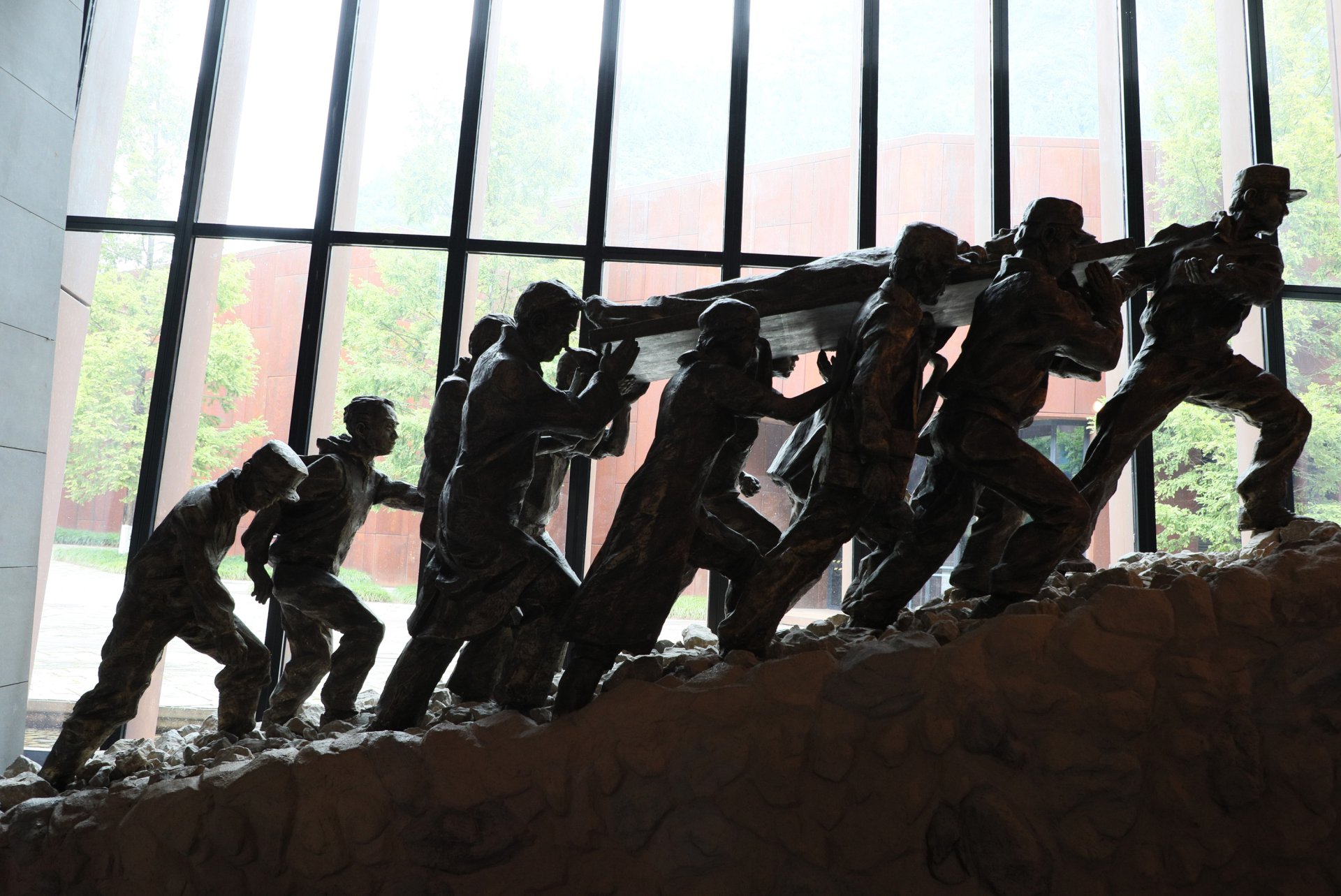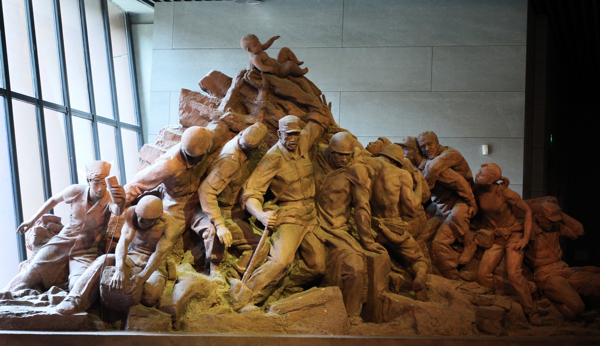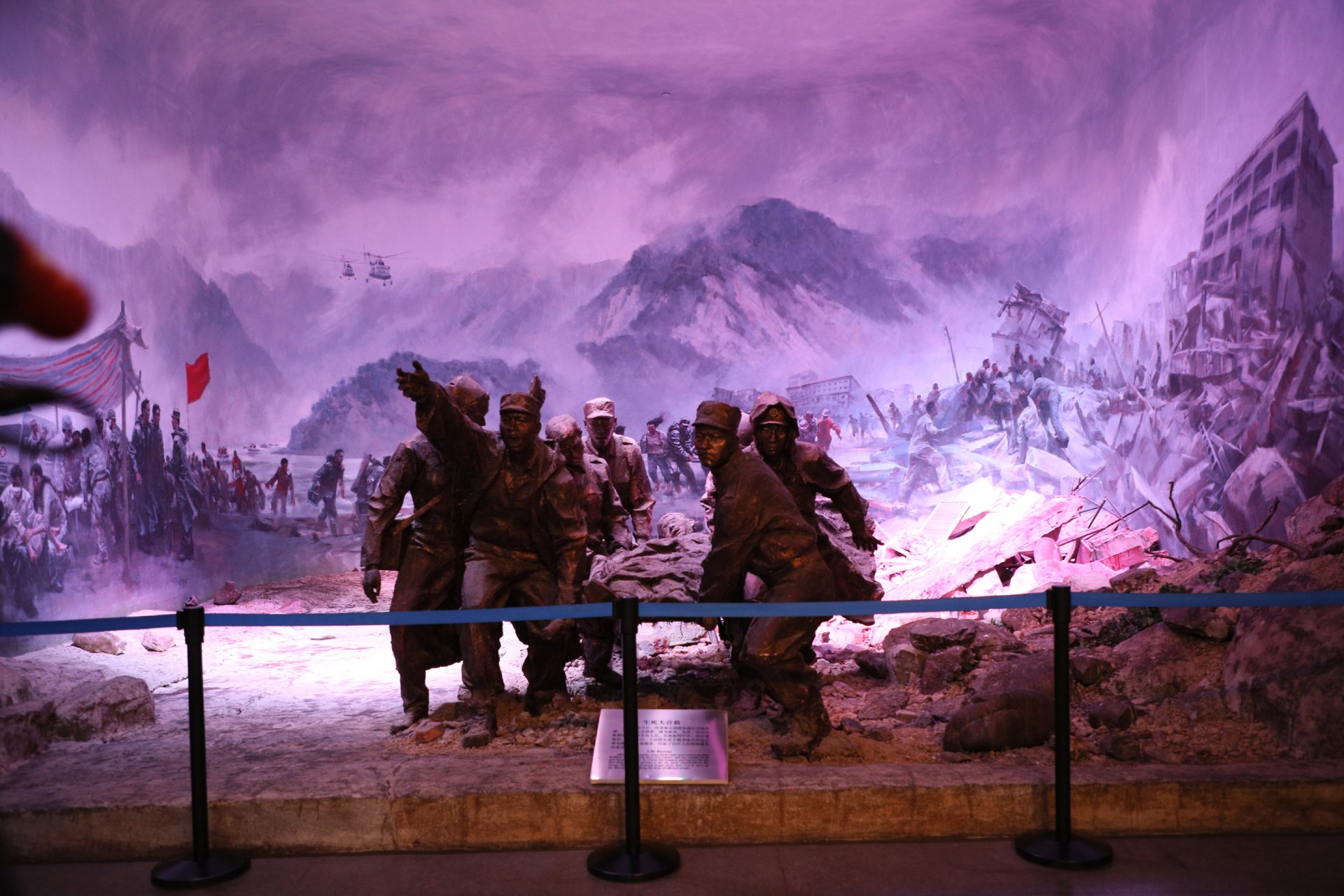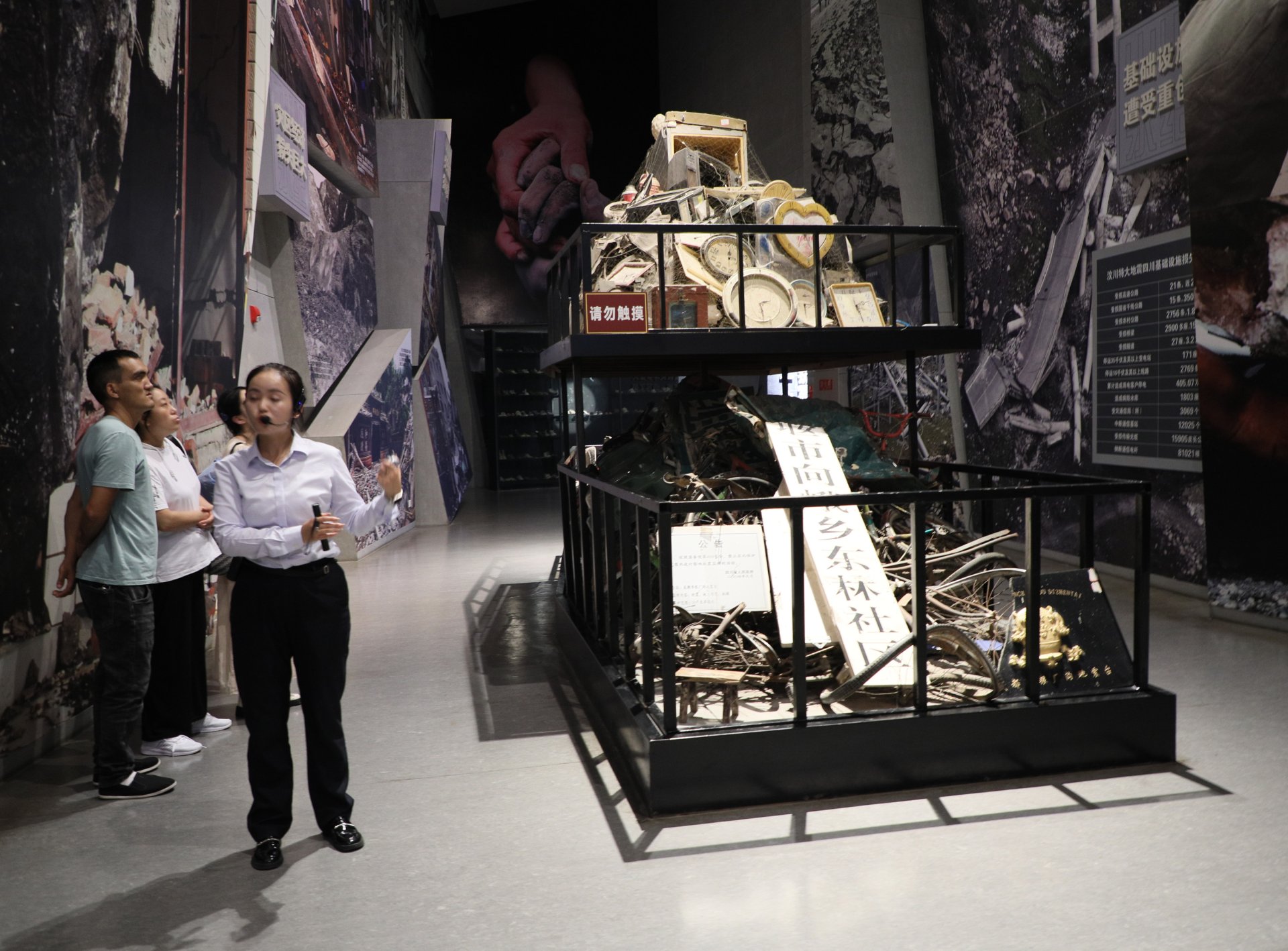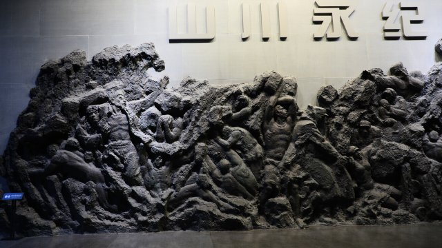 Müzeye giriş holünü boydan boya kaplayan devasa rölyefte ilk deprem anı, kurtarma çalışmaları, yeniden yapılanma ve normale dönüş günlerini anlatan, yüzlerce figür yer alıyor. Salonlarda, karayoluyla kurtarmaya giden, ulaşılmayan bölgelere paraşütle inen ekiplerin büyük boyutlarda fotoğrafları, kurtarma anı görüntüleri, çalışmalar sırasında kullanılan el aletlerini, ekskavatörleri, kırıcılar, dinleme cihazlarını, optik yaşam detektörünü, kurtarma ekiplerinin sırt çantalarını, deprem sonrası kurtulanları barındırmak için yapılan konteynerleri görmek mümkün. Wenchuan depreminden sonra Tiananmen Meydanı'nda ilk kez ölen sıradan insanlar için yarıya indirilen bayrak da müzede korunuyor.