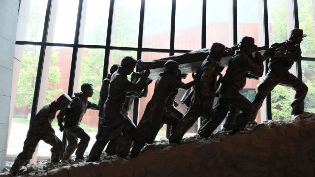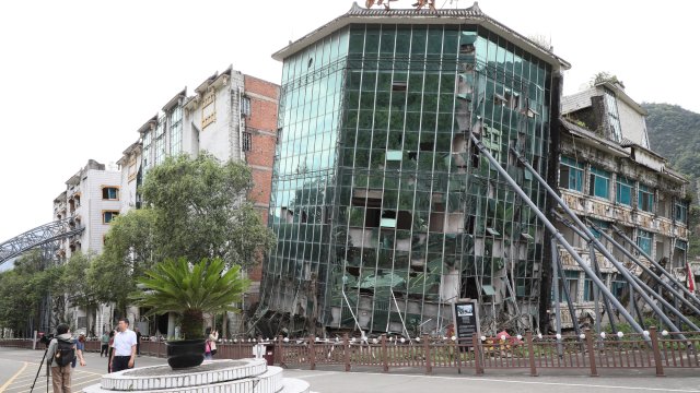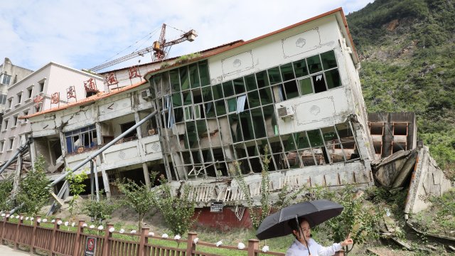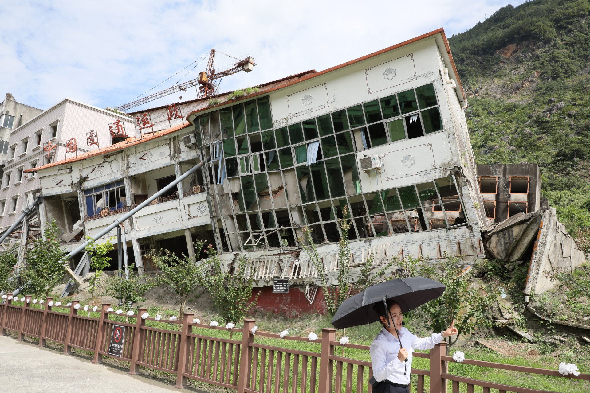 Polis memuru Zuo Yi’nin gözaltındaki 2 şüpheliyi kurtarırken enkaz altında kaldığı Beichuan Polis Merkezi’nin binasının giriş katına, ziyaretçilerin yıkımı içeriden görmeleri için profil borulardan bir tünel yapıldı.