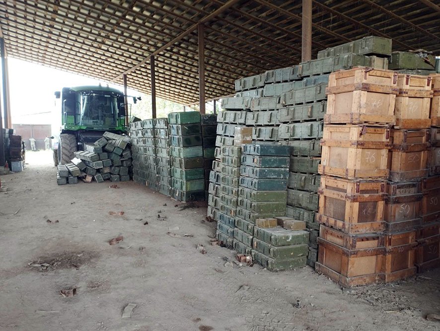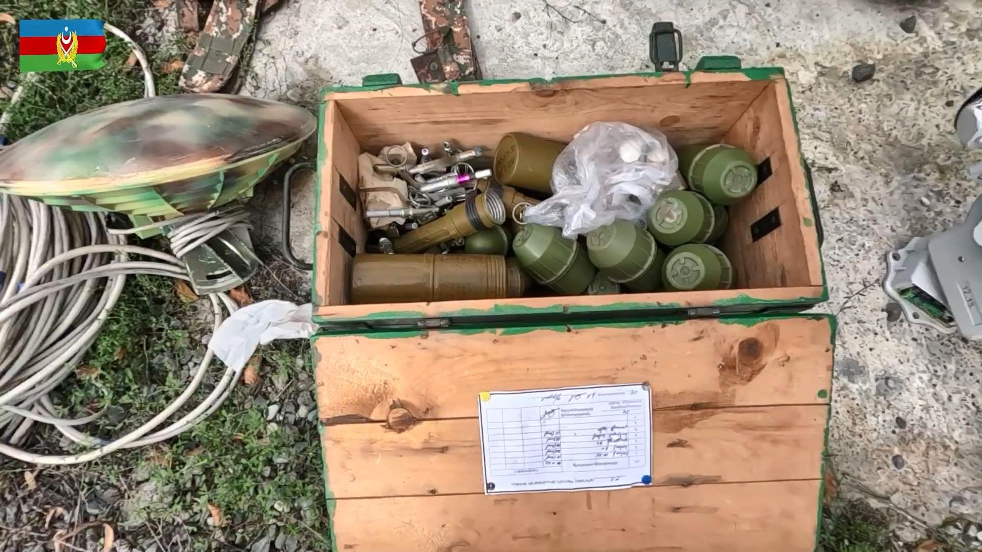 Azerbaycan Savunma Bakanlığı’ndan yapılan açıklamada, “Karabağ bölgesinde bulunan mermer fabrikasının bodrum katında gizlenmiş çok sayıda silah ve mühimmat bulundu. Yasadışı olarak faaliyet gösteren bu sivil tesis uzun süre askeri amaçlarla kullanılmıştı. Burada çeşitli kalibrelerde küçük silahlar, bomba atarlar, süngüler, güdümlü füzeler ve diğer askeri teçhizat bulundu ve ele geçirildi” denildi.