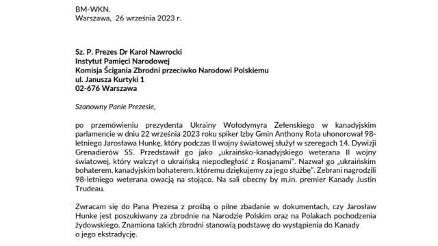 Polonya Eğitim Bakanı Przemyslaw Czarnek, Hunka’nın Polonya’ya iadesi için adımlar attığını belirterek, “Kanada Parlamentosu'nda yaşanan ve suçlu Nazi SS oluşumunun bir üyesinin Başkan Zelenski'nin huzurunda onurlandırılmasını içeren skandal olaylar ışığında, bu kişinin Polonya'ya olası iadesine yönelik adımlar attım” dedi.
