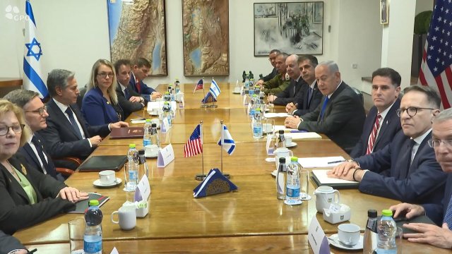 İsrail Başbakanlığı Basın Ofisi’nden yapılan açıklamada, “Başbakan Binyamin Netanyahu şu anda Tel Aviv'deki Kirya'da (hükümet binası) ABD Dışişleri Bakanı Antony Blinken ile görüşüyor. Genişletilmiş toplantının başında Başbakan Netanyahu, Dışişleri Bakanı Blinken'a 'Biz buradayız; hiçbir yere gitmiyoruz' açıklaması için teşekkür etti” denildi.