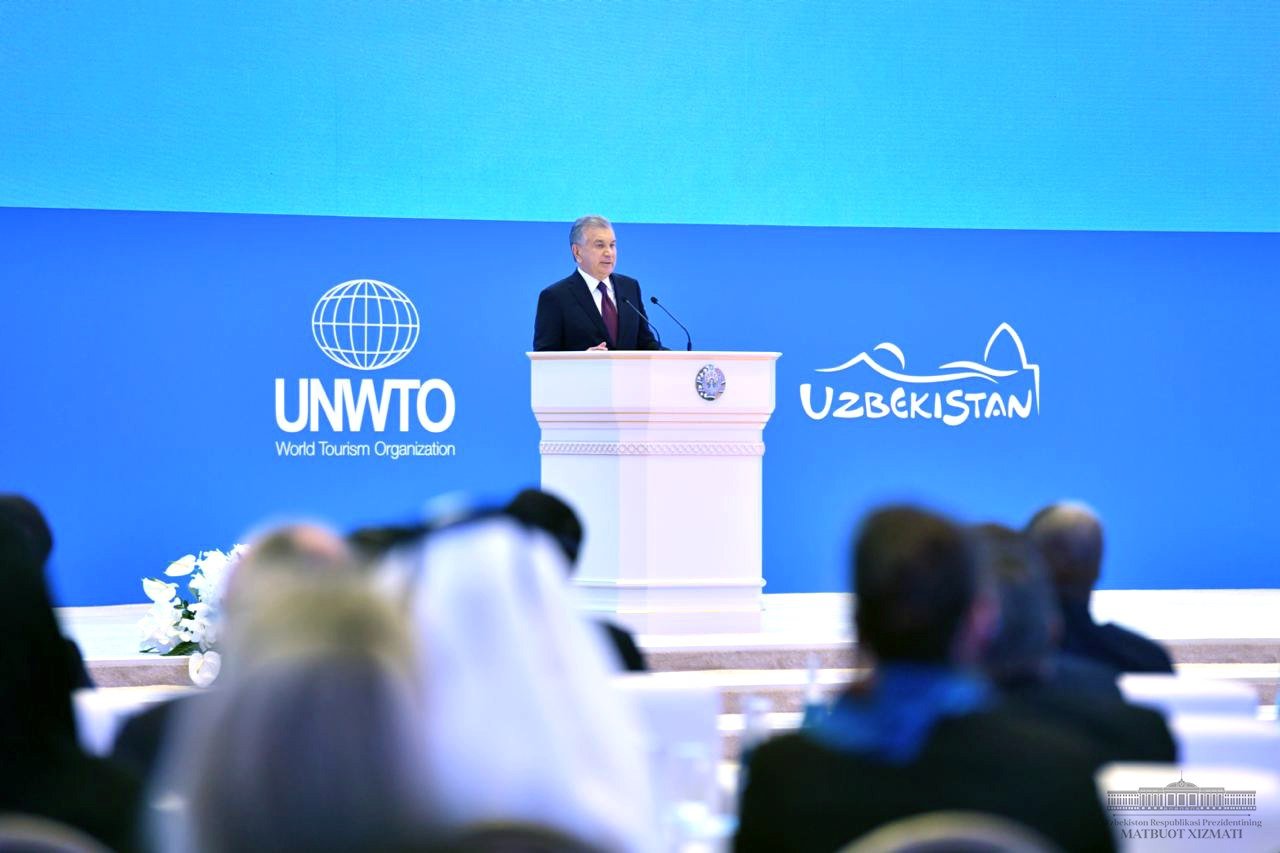 Toplantının Semerkant'ta yapılmasından mutluluk duyduğunu ifade eden Özbekistan Cumhurbaşkanı Şevket Miramanoviç Mirziyoyev, “’Yeryüzünün güzelliği’ olarak ün kazanan ve Doğu'nun iki büyük rönesans döneminin gelişimine büyük katkı sağlayan Semerkant, artık dünyanın modern turizm merkezlerinden biri haline geliyor. Prestijli uluslararası etkinliğimizin bu şehirde yapılıyor olması da görüşümüzü açıkça doğruluyor. Semerkant'a hoş geldiniz, turizm küresel olarak gelişiyor ve kapılarını tüm dünyaya açıyor. Pandemi nedeniyle ülke genelinde turizm geriledi ancak planlama ile yeniden rayına oturdu. Geçen yıl 1,5 milyar turist dünyanın diğer ülkelerine seyahat etti. Şu anda turizm dünyanın her yerinde kültürel ve dostane ilişkiler geliştiriyor. Turizmin dünya çapında küreselleşmesini memnuniyetle karşılıyoruz. Şu anda turizm bize eğitimde, yoksulluğun azaltılmasında ve gelişmiş ülkelerle dostane ilişkilerde yardımcı oluyor. Özbekistan son 4-5 yılda turizme çok önem verdi. Şu anda yaklaşık 100 ülke Özbekistan'a vizesiz seyahate izin veriyor ve 50'den fazla ülke basitleştirilmiş vize türlerini uygulamaya koyuyor” diye konuştu.