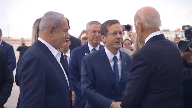 ABD Başkanı Joe Biden, İsrail’e ulaştı. Biden’ı İsrail Başbakanı Binyamin Netanyahu ve İsrail Cumhurbaşkanı Yitzak Hertzog karşıladı.