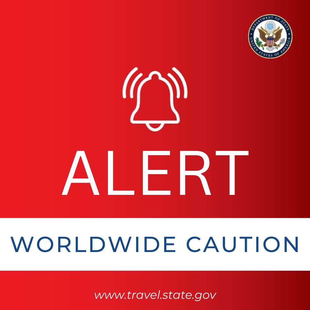ABD Dışişleri Bakanlığı’na bağlı Konsolosluk İlişkileri Bürosu’nun seyahat bölümü, dün yayınladıkları uyarıda ABD vatandaşlarının seyahat ederken tetikte olmasını tavsiye ederek “Dünya Çapında Dikkat: Dünyanın çeşitli yerlerinde artan gerilim, ABD vatandaşlarına ve çıkarlarına yönelik terör saldırıları, gösteriler veya şiddet eylemleri potansiyeli nedeniyle, Dışişleri Bakanlığı denizaşırı ülkelerdeki ABD vatandaşlarına daha dikkatli olmalarını tavsiye etmektedir” açıklamasını yaptı.