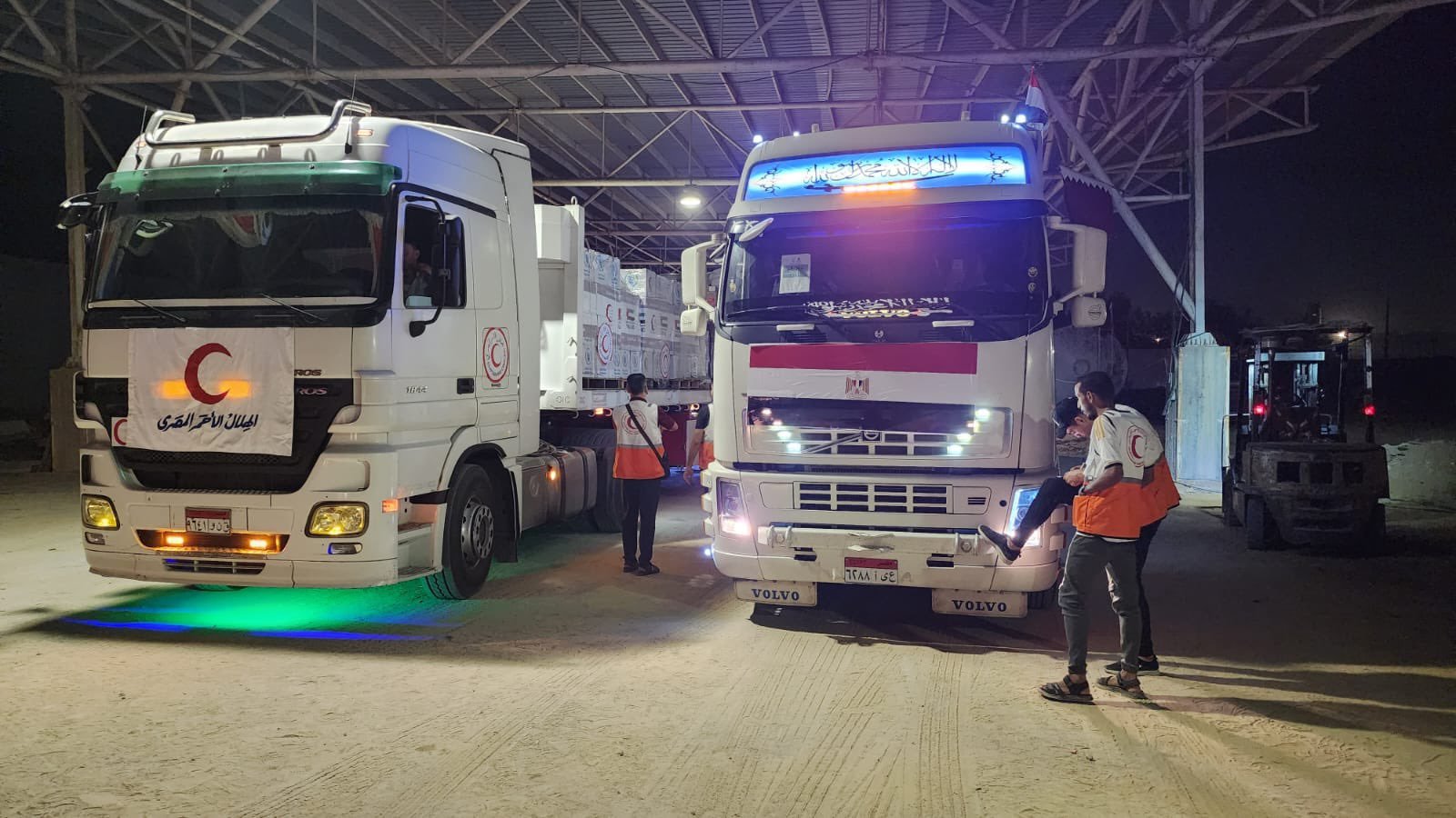 Malzemelerin Birleşmiş Milletler Yakın Doğu'daki Filistinli Mültecilere Yardım ve Bayındırlık Ajansı (UNWRA) depolarına nakledildiği belirtilen açıklamada, “Filistin Kızılayı, Mısır Kızılayı'ndan gıda, su ve tıbbi malzeme içeren 15 TIR temel malzeme aldı. Yardımlar UNRWA kamyonları aracılığıyla UNRWA depolarına taşındı” denildi.