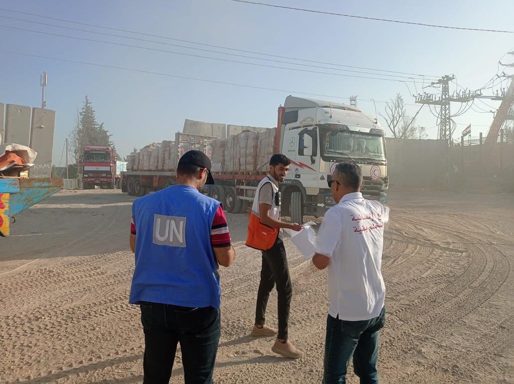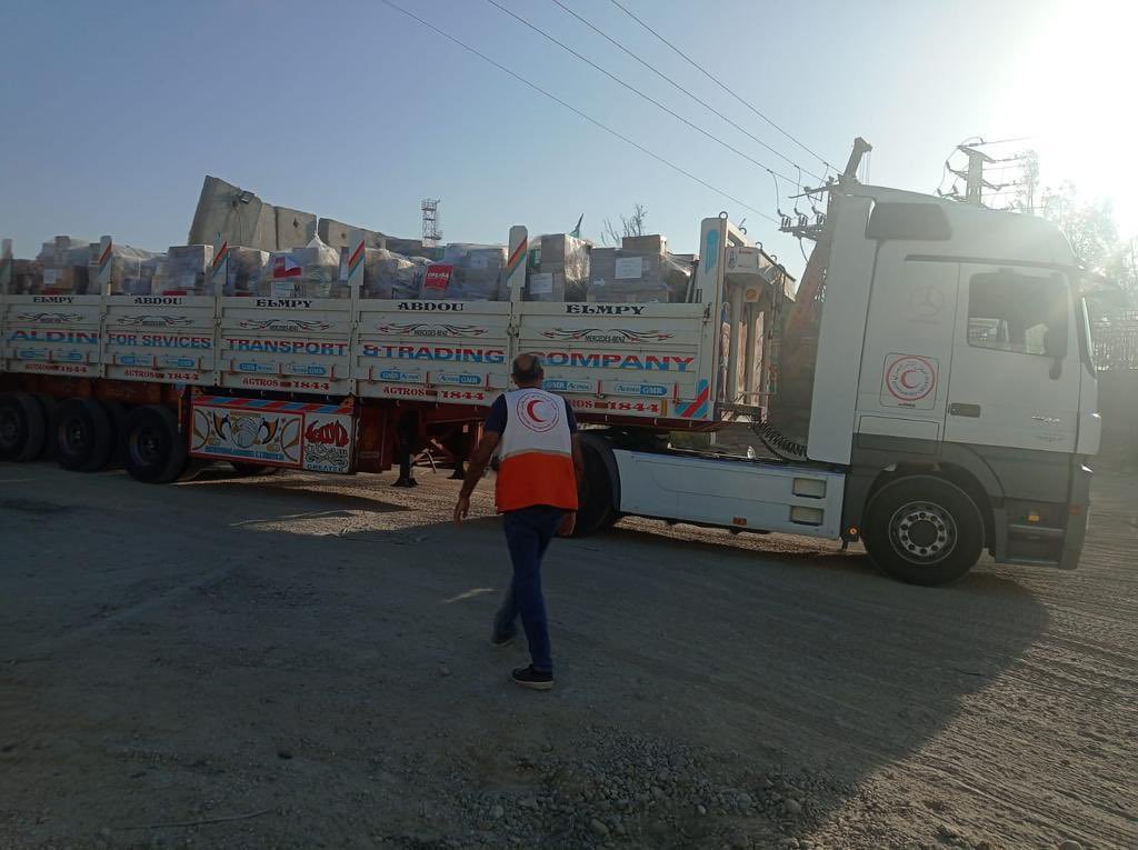 Filistin Kızılayı’ndan yapılan açıklamada, “Filistin Kızılay ekipleri Mısır Kızılay'ından gelen yardım yüklü 106 kamyonu ve Kuveyt'ten gelen 5 ambulans aracını Refah sınır kapısından teslim aldı. Kamyonlarda gıda, su, yardım malzemesi, tıbbi malzeme ve ilaç bulunmaktadır. Günde yaklaşık 39 kamyon olmak üzere 21 Ekim 2023 tarihinden bugüne kadar gelen toplam kamyon sayısı 756'dır. Ancak işgal makamları şu ana kadar yakıt girişine izin vermedi” denildi.
