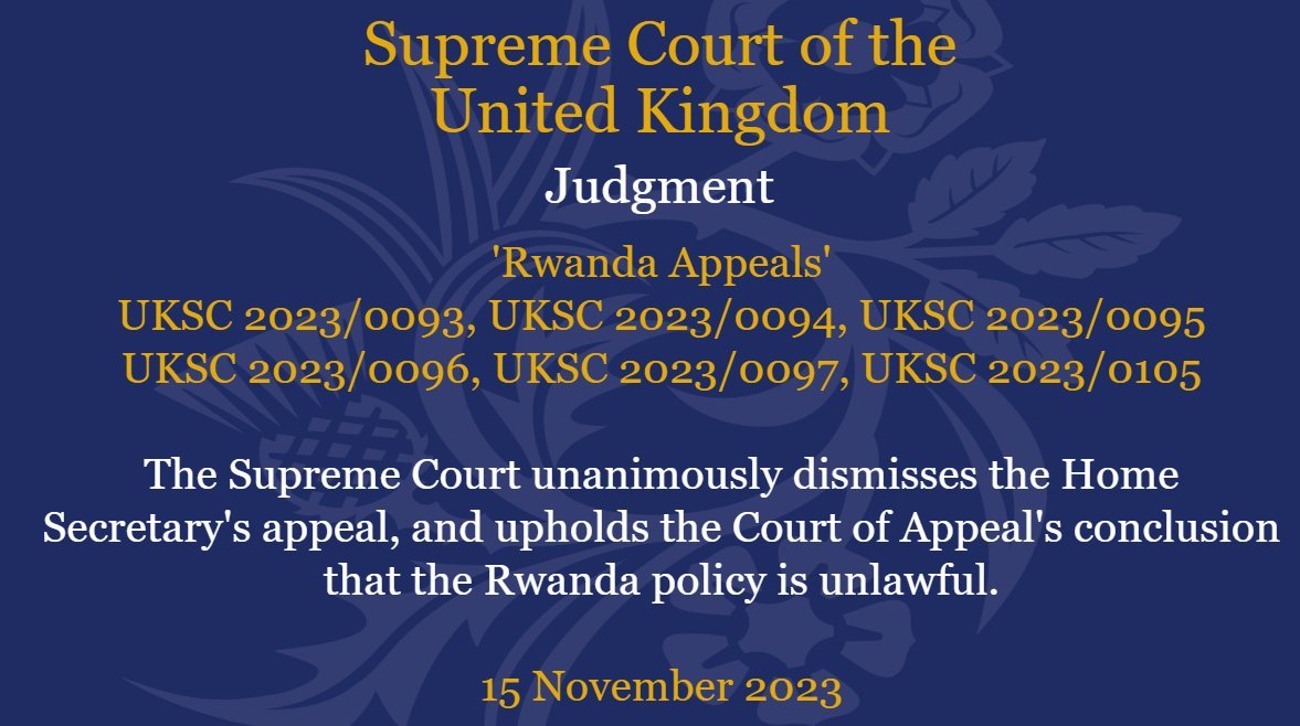 İngiltere’nin en yetkili yargı organı Yüksek Mahkeme, İngiltere hükümetinin sığınmacıları Ruanda’ya gönderme planını ‘hukuka aykırı’ bulduğunu açıklayarak “Buna göre, iltica süreçlerindeki eksiklikler giderilmedikçe ve giderilene kadar, sığınmacıların Ruanda'ya gönderilmesi 1998 İnsan Hakları Yasası'nın 6. bölümü uyarınca hukuka aykırı olacaktır. Çünkü bu, Avrupa İnsan Hakları Sözleşmesi'nin işkenceyi, insanlık dışı veya aşağılayıcı muameleyi yasaklayan 3. maddesinin ihlali anlamına gelecektir” açıklamasını yaptı. Ruanda’nın ‘güvenli bir üçüncü ülke olmadığını’ belirten İngiltere Yüksek Mahkemesi, kararı oybirliği ile aldığını vurguladı.