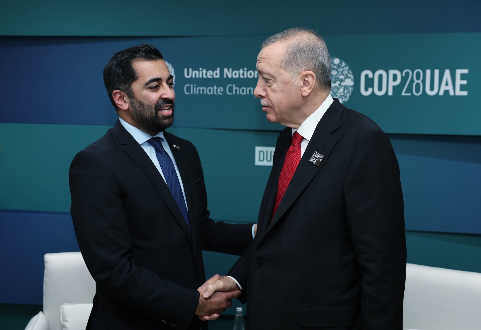 Cumhurbaşkanı Recep Tayyip Erdoğan, Dünya İklim Eylemi Zirvesi için geldiği Dubai’de İskoçya Başbakanı Hamza Yusuf ile bir araya geldi.