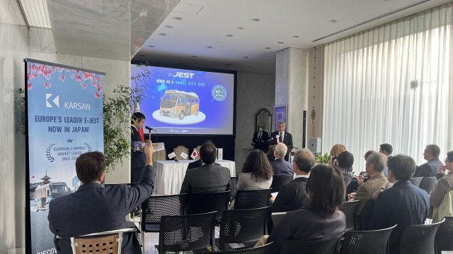 Okan Baş, ilk etapta Japonya’ya giriş için bir pazarlama planı yapmadıklarını, Japon iş insanlarının bir fuarda aracı görüp ‘adeta aşık olduklarını’ belirterek “e-JEST’in Japonya pazarı için, Japon şehirleri için çok ideal bir çözüm olduğunu belirttiler. Bizim bir de otonom tarafımız var. Sürücüsüz otobüs de yapabiliyoruz. Ürünlerimizi, markamızı teknolojinin hep bir adım önünde götürdüğümüz için bu da onları çok etkiledi” dedi. Japonya’da sağ direksiyonlu trafik akışına dikkat çeken Okan Baş, “Bizim sağdan direksiyonlu bir aracımız yoktu. Sağdan direksiyonlu olarak Japonya regülasyonlarına göre, kurallarına göre aracı donattık ve çok kısa sürede bunu yaptık” ifadelerini kullandı. Japonya otomotiv sektöründen kalabalık bir grup iş insanına detaylı bir program hazırlayan Karsan, 21 Aralık’ta Tokyo caddelerinde e-JEST’in test sürüşünü düzenleyerek sağdan direksiyonlu elektrikli minibüsün deneyimlenmesini sağladı.