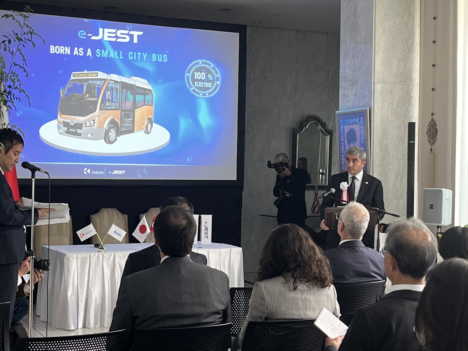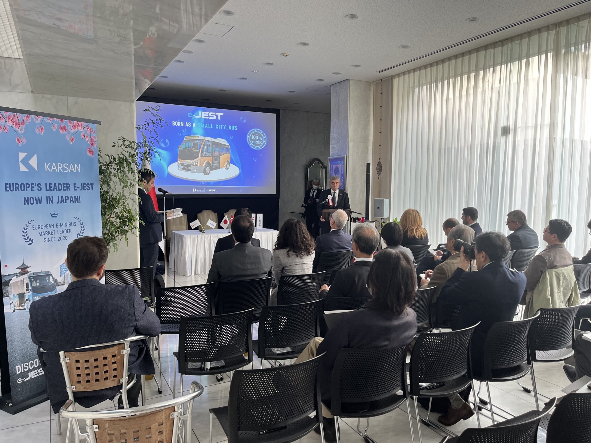 Karsan ve Altech’in distribütörlük anlaşması altında yaptıkları iş birliğini tebrik eden Türkiye’nin Tokyo Büyükelçisi Korkut Güngen, konuşmasında “Avrupa’nın önde gelen elektrikli minibüslerinden biri olan e-JEST, diğer bölgelerde de hızlıca büyüyor. Türk firmalarının yüksek kaliteli ürünlerinin gün geçtikçe daha fazla pazarlarda öne çıkmasından memnuniyet duyuyorum” ifadelerine yer verdi. Karsan’ın Japonya pazarına girmesinin diğer Türk firmalarının da önünü açmasını umduğunu belirten Büyükelçi Güngen, Karsan ve Altech’in işbirliğinin iyi bir örnek teşkil edeceğini ifade etti.
