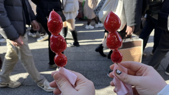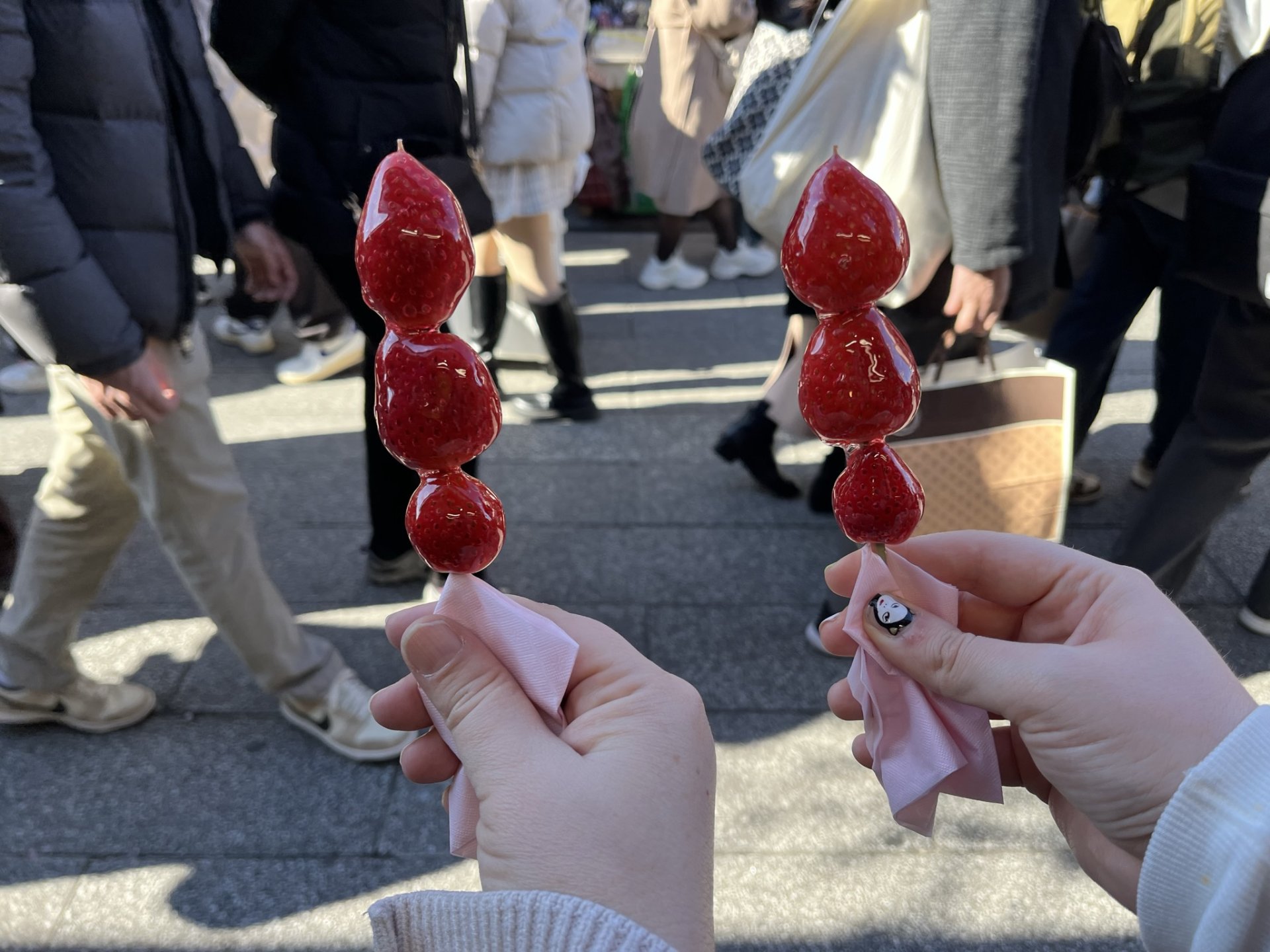 Tiktok videolarıyla son yıllarda ünlenen Tsukiji Balık Pazarı ise yağlı ton sushileriyle yerli ve yabancı turistlerin uğrak yeri haline gelmiş. Taze deniz ürünlerinin sabah erken saatlerde satışına başlanan pazarda, başya yağlı ton balığı ürünleri olmak üzere ayaküstü Japonya mutfağının lezzetleri sunuluyor. Tokyo’daki büyük balık pazarından ayrılarak Ginza semtine yakın bir yere konumlandırılan pazarda, sushi restoranlarında özenle taze balıktan hazırlanmış yağlı ton sushileri şimdiden dünya çapında üne kavuştu. Tsukiji Balık Pazarı’nda ayaküstü pişirilip satılan taze deniz ürünlerinin yanı sıra Japonya’nın en sevdiği meyve olan çilekten hazırlanmış tatlılar göz dolduruyor.