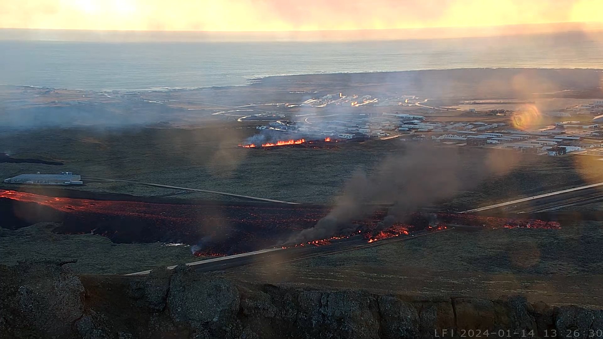 IMO, lavların Kasım’dan bu yana patlama riskine karşı Grandavik’in kuzeyinde inşa edilen savunma bariyerlerinde çatlak oluşturduğunu ifade etti. IMO konuyla ilgili yaptığı açıklamada, “Grindavik'in hemen kuzeyinde iki çatlak bulunuyor; büyük olanı Hagafell'de, küçük olanı ise kasabanın sınırında. Lav her iki çatlaktan da akıyor. Bugün öğlen 12 civarında açılan yaklaşık 100 metre uzunluğundaki daha küçük çatlak, Grindavik'teki Efrahopi mahallesine sadece 200 metre uzaklıkta bulunuyor. Lav buradan şehir sınırlarına akıyor ve orada ciddi hasara neden oluyor” ifadelerini kullandı.