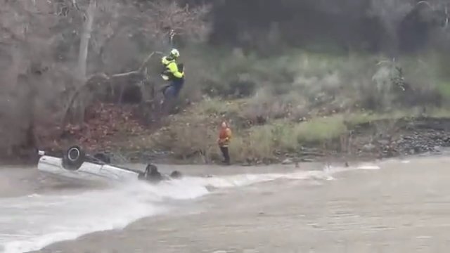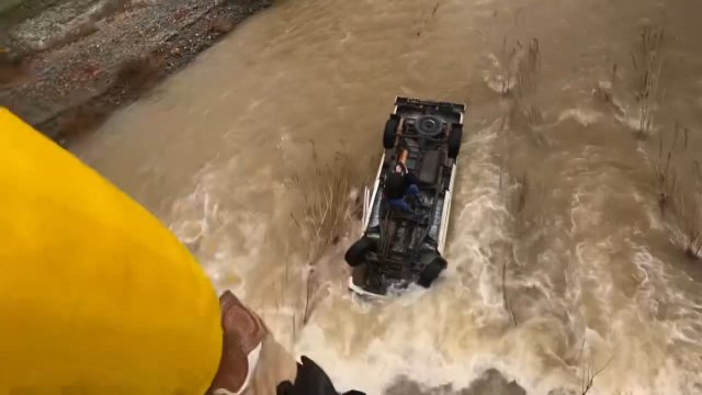 Kaliforniya’nın Livermore ilçesinde bir kadın, aracıyla dere yolunu geçerken şiddetli yağışların fırtınaya dönüşmesi sonucunda debisi yükselen derede aracıyla sürüklendi. Ters dönen aracıyla derenin ortasında 15 saat boyunca kurtarılmayı bekleyen kadını ertesi gün yakınlarda kamp kuran kişiler fark etti. Olay yerine gelen acil müdahale ekipleri kadını helikopterle kurtardı.