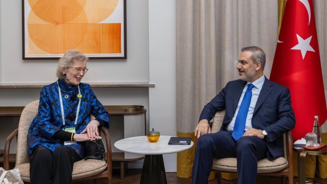 Bakan Fidan Münih temasları çerçevesinde Küresel Akiller Grubu Başkanı Mary Robinson ve beraberindeki heyet üyelerini kabul etti. Fidan görüşmenin ardından Hollanda Dışişleri Bakanı Hanke Bruins Slot ve İsveç Dışişleri Bakanı Tobias Billström ile bir araya geldi.